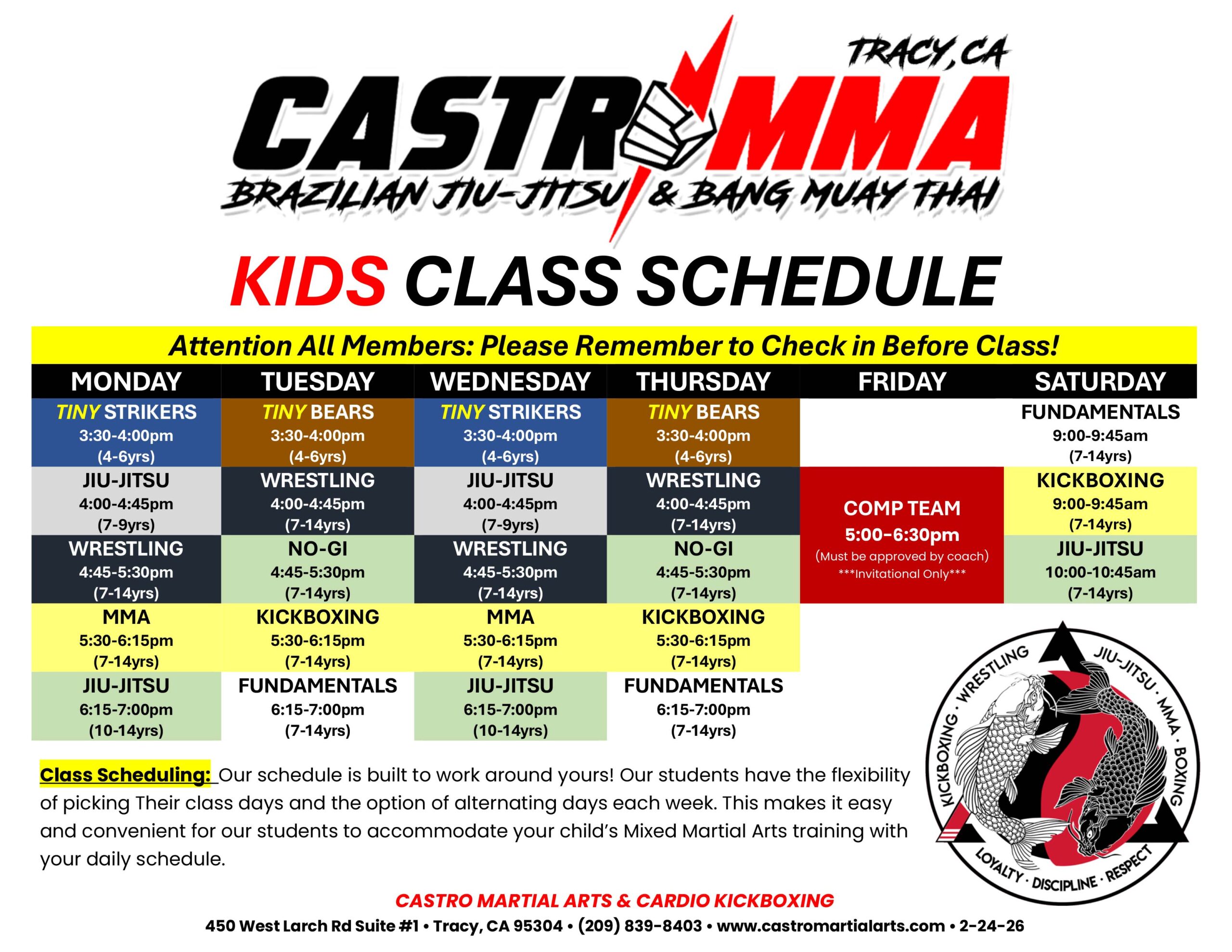 CASTRO MIXED MARTIAL ARTS HQ Building A Stronger Community, One Family At A Time! UPCOMING EVENTS STUDENT CORNER UPCOMING EVENTS STUDENT CORNER HQ• TRACY, CA ADDRESS 450 WEST LARCH ROAD, #1 TRACY,CA 95376 PHONE NUMBER 209-839-8403 E-MAIL ADDRESS CASTROMARTIALARTS@ICLOUD.COM MONDAY 3:30PM-9:00PM TUESDAY 4:00PM-9:00PM WEDNESDAY 3:30PM-9:00PM THURSDAY 4:00PM-9:00PM FRIDAY COMP TEAM ONLY SATURDAY 8:00AM-12:00PM Building A Stronger Community, One Family At A Time! Facebook Instagram Youtube Yelp